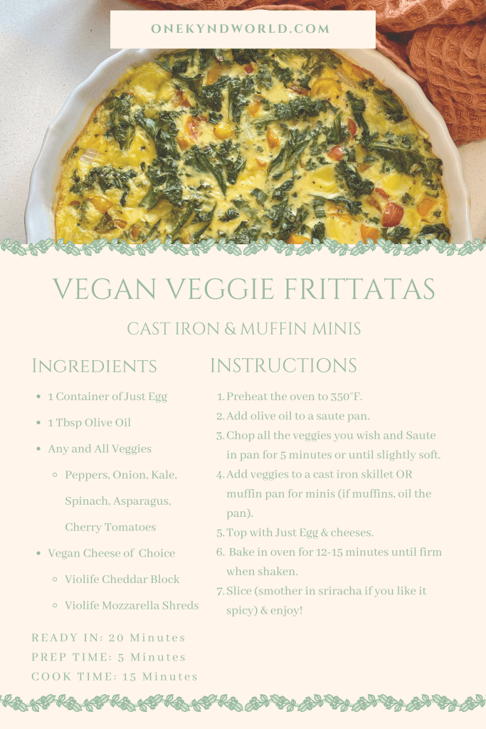 The cast iron frittata is a dream for a Sunday brunch and the muffin minis are the perfect meal prep. I love to make a few batches on Sundays to heat up for the week!